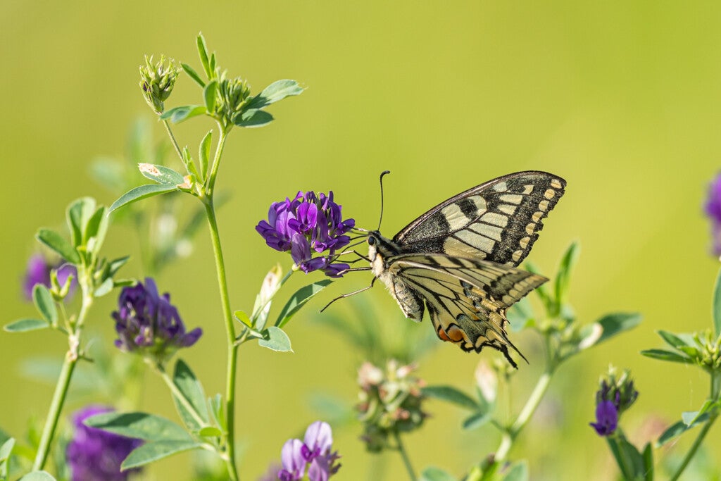 De koninginnenpage (Apilio machaon) behoort tot de familie van de grote pages en is onze grootste inheemse dagvlindersoort. Met zijn prachtig geelzwart gekleurde vleugels, is hij ook één van de mooiste vlindersoorten die we hier te zien krijgen.