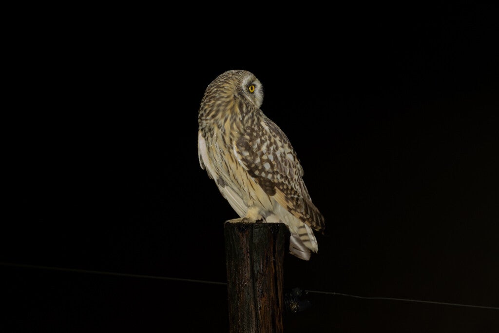 De velduil (Asio flammeus) die ik in de UItkerkse polder ben gaan fotograferen en het weer was al helemaal niet te best, is een roofvogel die overdag actief is. Toch moet je al geluk hebben om hem in Vlaanderen te spotten. Hij staat immers vermeld als zeldzaam. Wel overwinteren er jaarlijks een aantal velduilen bij ons. De grootste aantallen worden dan ook vastgesteld tijdens de wintermaanden.
