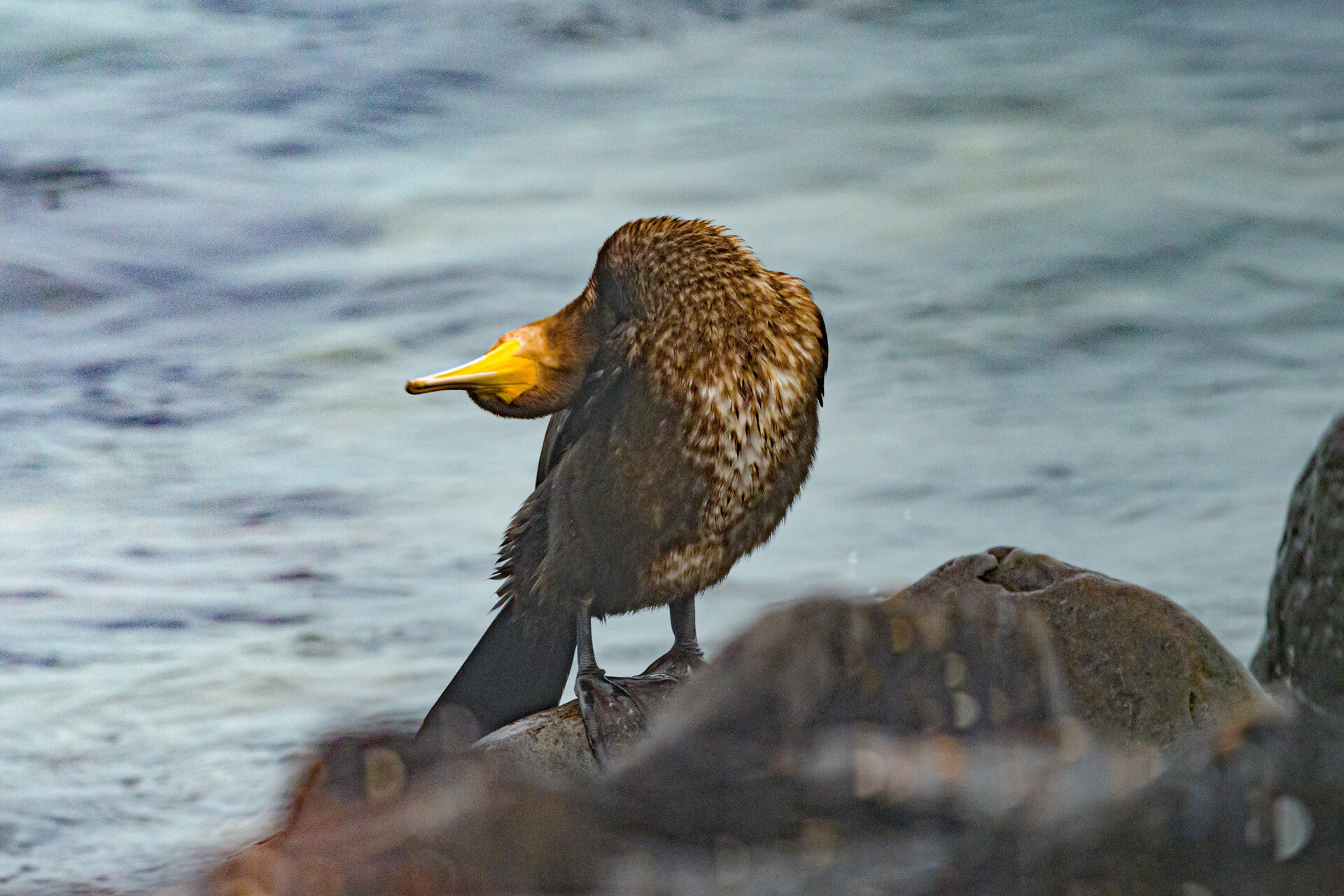 Kuifaalscholvers worden veelal waargenomen in havens en langs pieren. Op specifieke locaties, zoals de Zuidpier van IJmuiden en de Oosterscheldekering bij Neeltje Jans, worden met regelmaat enkele exemplaren gesignaleerd. De opname is gemaakt onder omstandigheden van dichte mist.