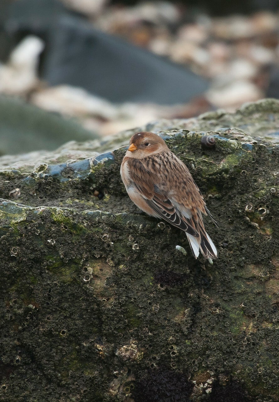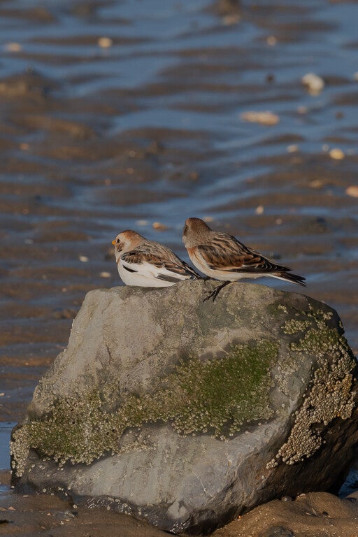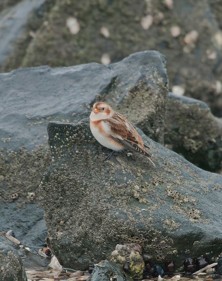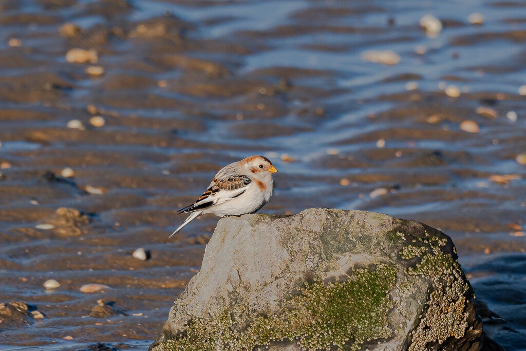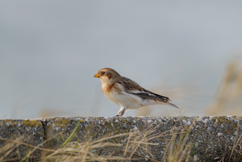 De sneeuwgors (Plectrophenax nivalis) kunnen spotten in Zeeland, Brouwersdam. Sneeuwgorzen broeden in de zomer in het noorden en zijn vooral in Nederland als wintergast.