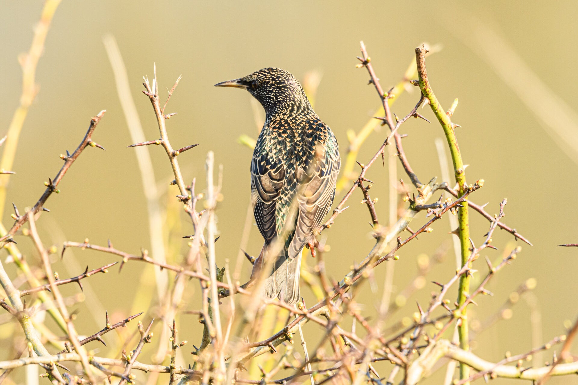 Een spreeuw (Sturnus vulgaris) ziet de spreeuw er op het eerste gezicht wat saai uit, maar als je hem van dichterbij bekijkt, valt zijn prachtige verenkleed des te meer op. De soort komt algemeen voor in tuinen en steden, maar ook in parken en bossen met boomholtes. Voedsel zoeken ze vaak op gazons en in weilanden.