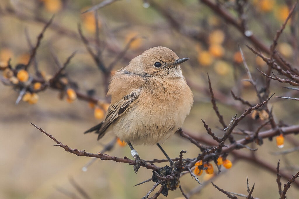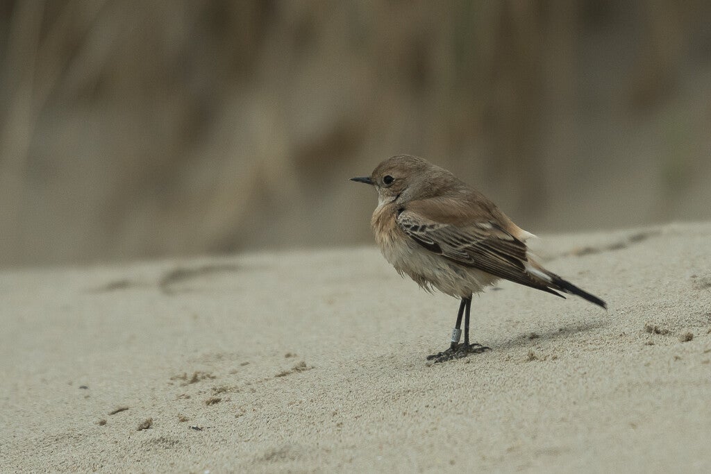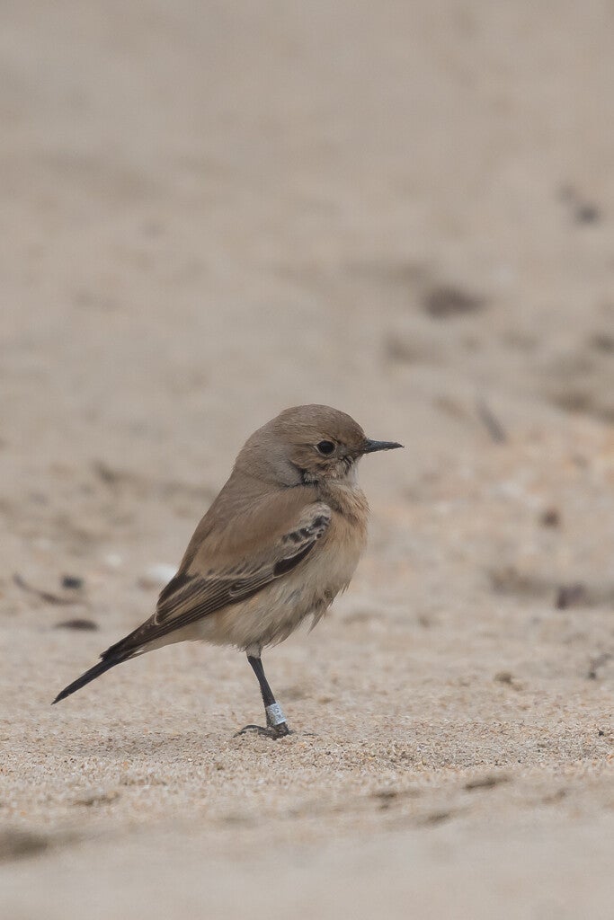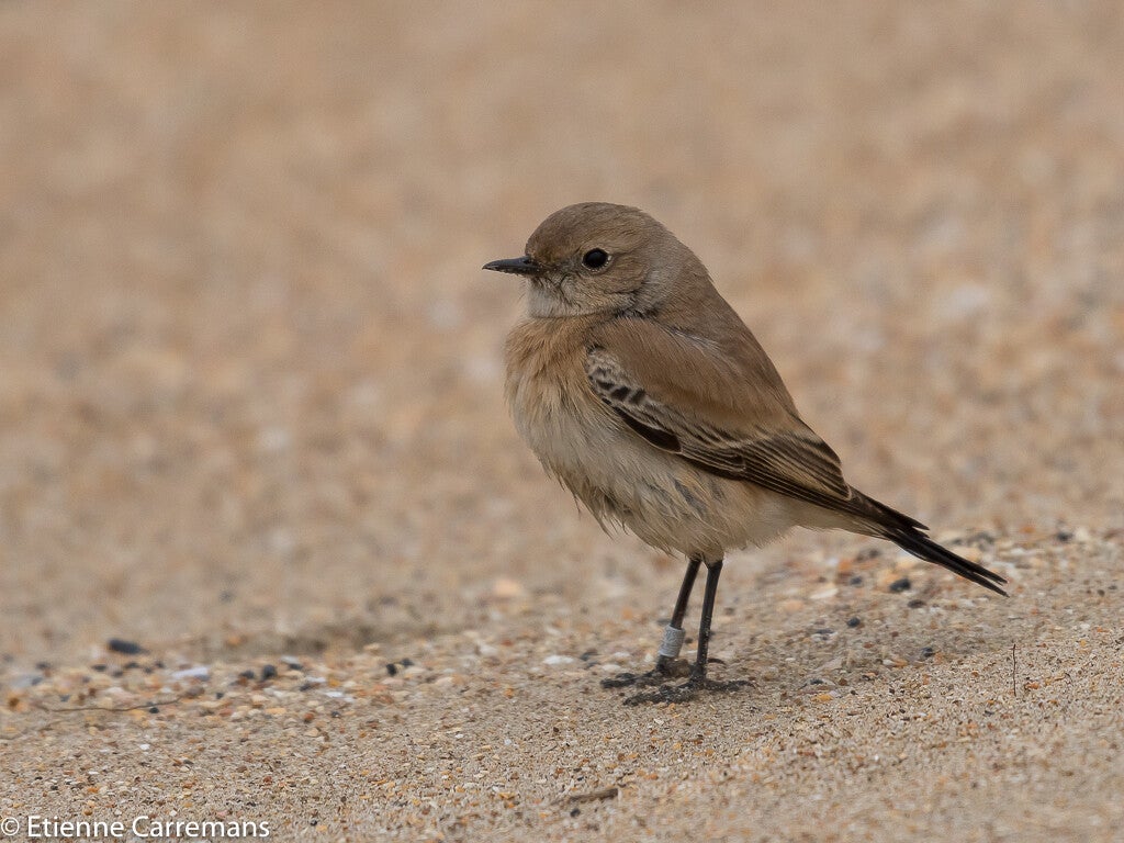 Het mannetje heeft in de broedtijd een zwarte keel en zwarte slagpennen met daarboven een witte band. Bij het vrouwtje hebben de donkere slagpennen lichte randen. Deze soort komt voor in West- en Midden-Azië en noordelijk Afrika.