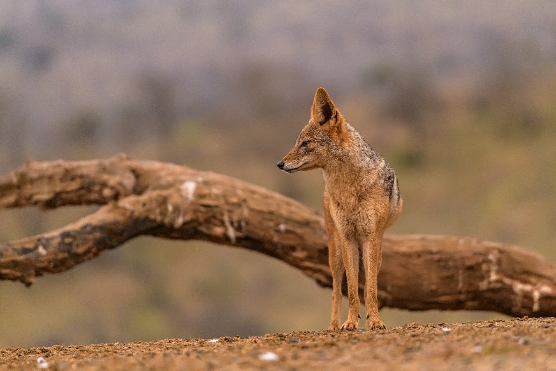 Een jakhals is een roofdier dat behoort tot de familie van de hondachtigen. Het is een zoogdier en heeft een slanke bouw met lange poten, een spitse snuit en vaak een bontgekleurde vacht die varieert van geelbruin tot grijs. Jakhalzen zijn opportunistische jagers die zowel prooien najagen als aas eten. Ze komen voor in Afrika, Azië en delen van Europa en het Midden-Oosten.